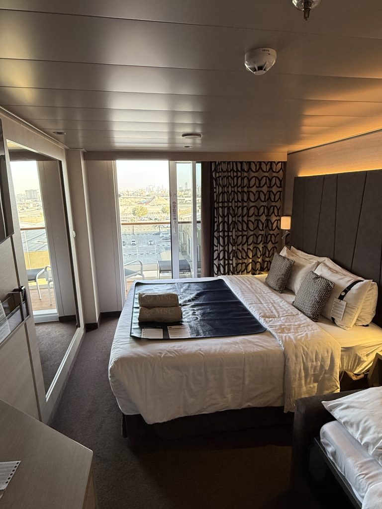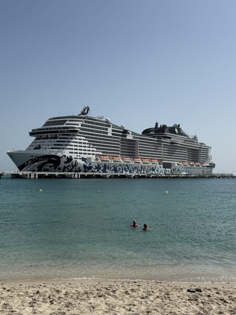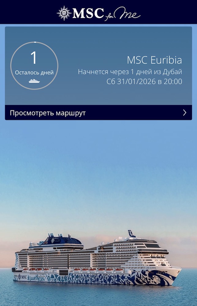 Мы путешествовали на лайнере MSC Euribia компании MSC Cruises. В зимнем сезоне 2025-2026 MSC Euribia совершает круизы по Персидскому заливу каждую неделю с ноября по март.
