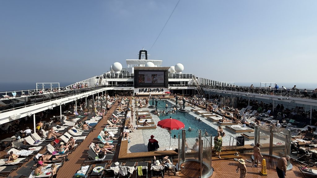 Погода, как я уже говорил была отличной, так что большую часть дня мы загорали на палубе, купались в бассейнах и ели)))