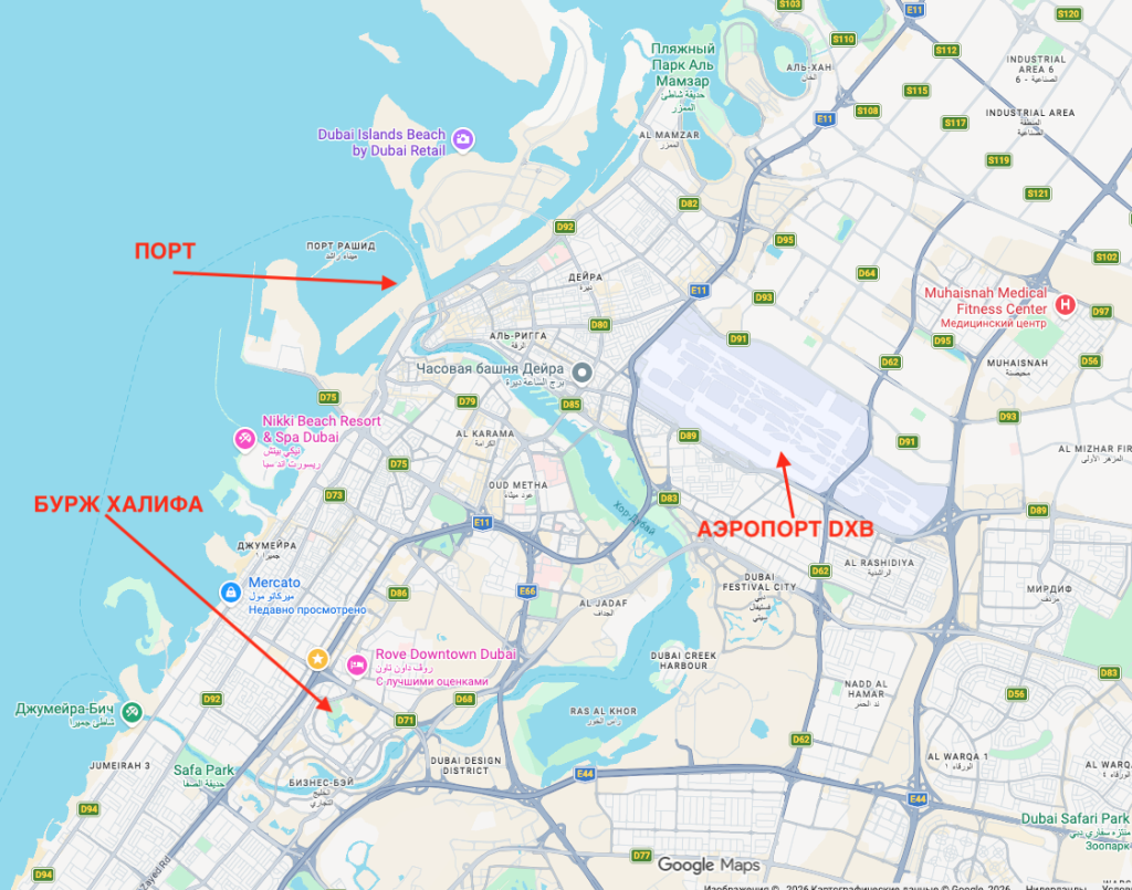 Либо — второй вариант — воспользоваться бесплатным шаттл-бассом: они курсируют между портом и некоторыми торговыми центрами города, например, Marcato Mall или Dubai Outlet Mall. Но проще на такси от метро — это не дорого, около 20 дирхамов (около 400 рублей по курсу на февраль 2026 года). Мы, например, ехали на лайнер от Бурж Халифы и такси обошлось в 39,5 дирхамов (около 840 рублей).