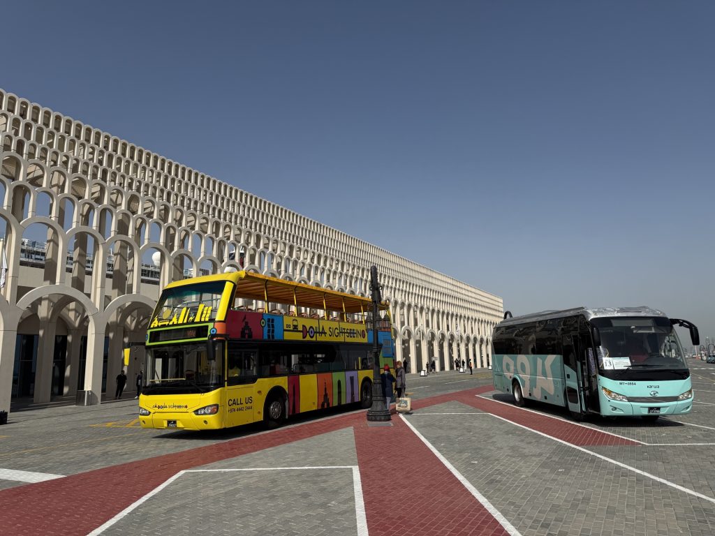 Другой вариант добраться «в город» — купить билет на туристический автобус Hop-on Hop-off и прямо из порта самостоятельно отправиться на экскурсию. Цена билета — 200 катарских риалов (около $55).